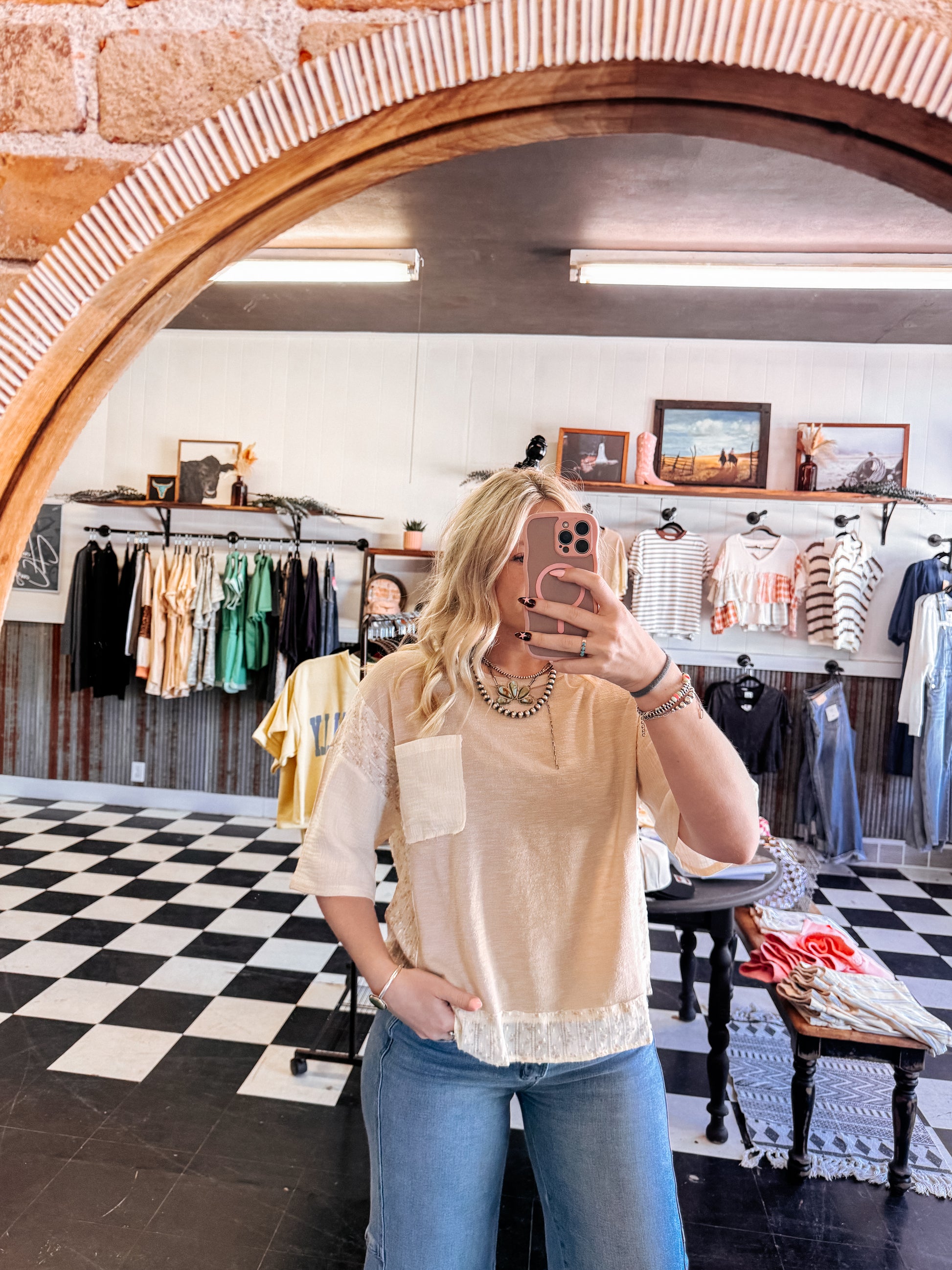 Beige floral detail top